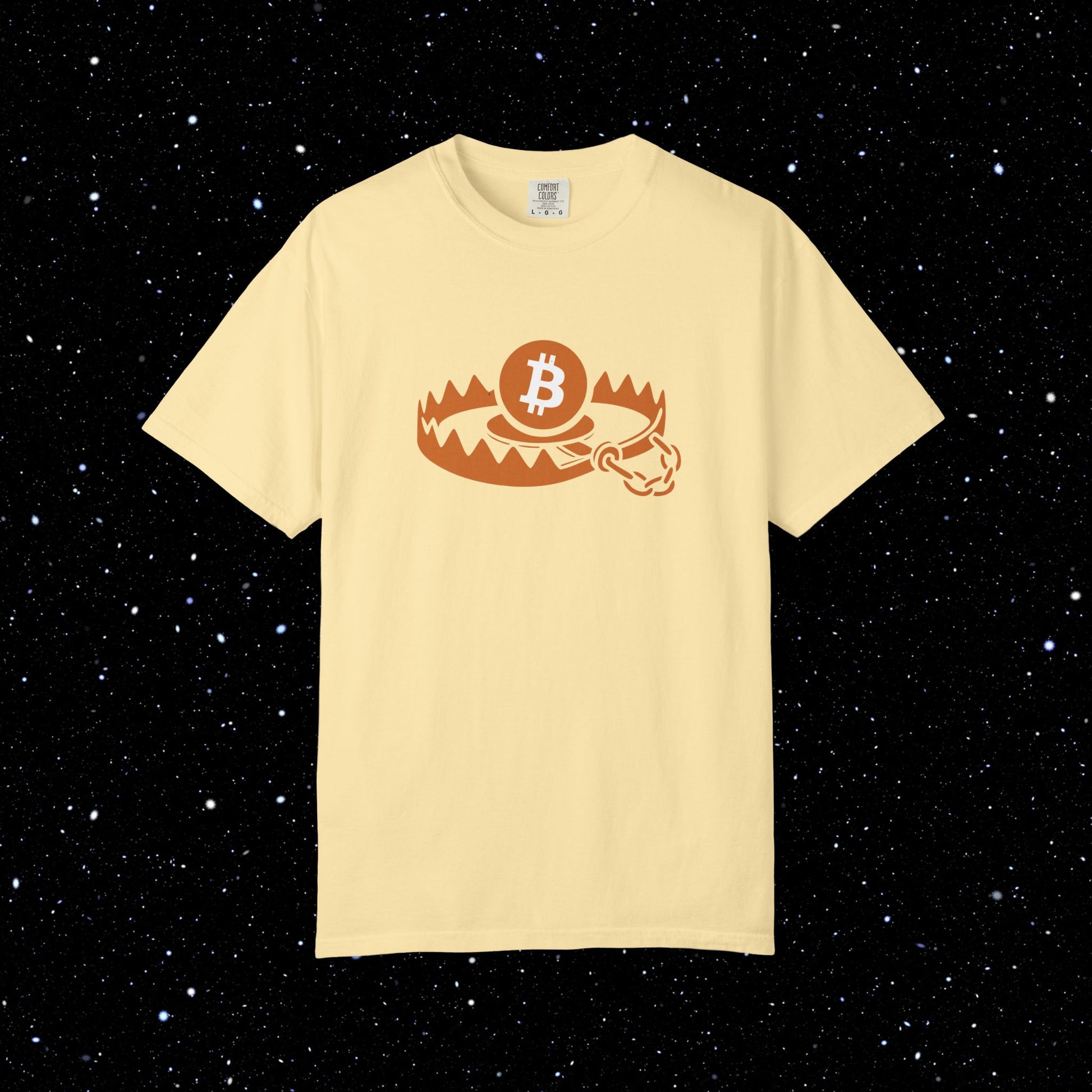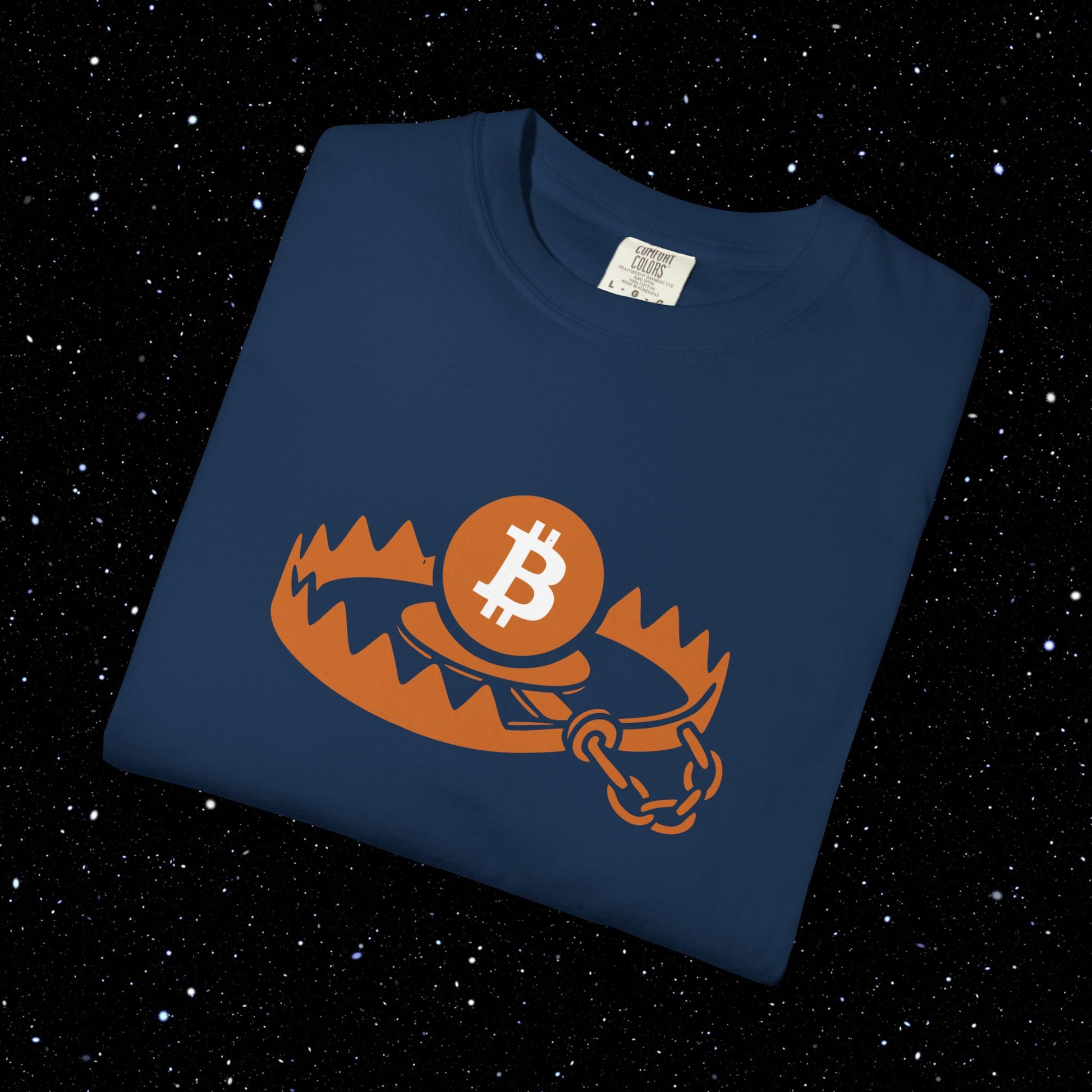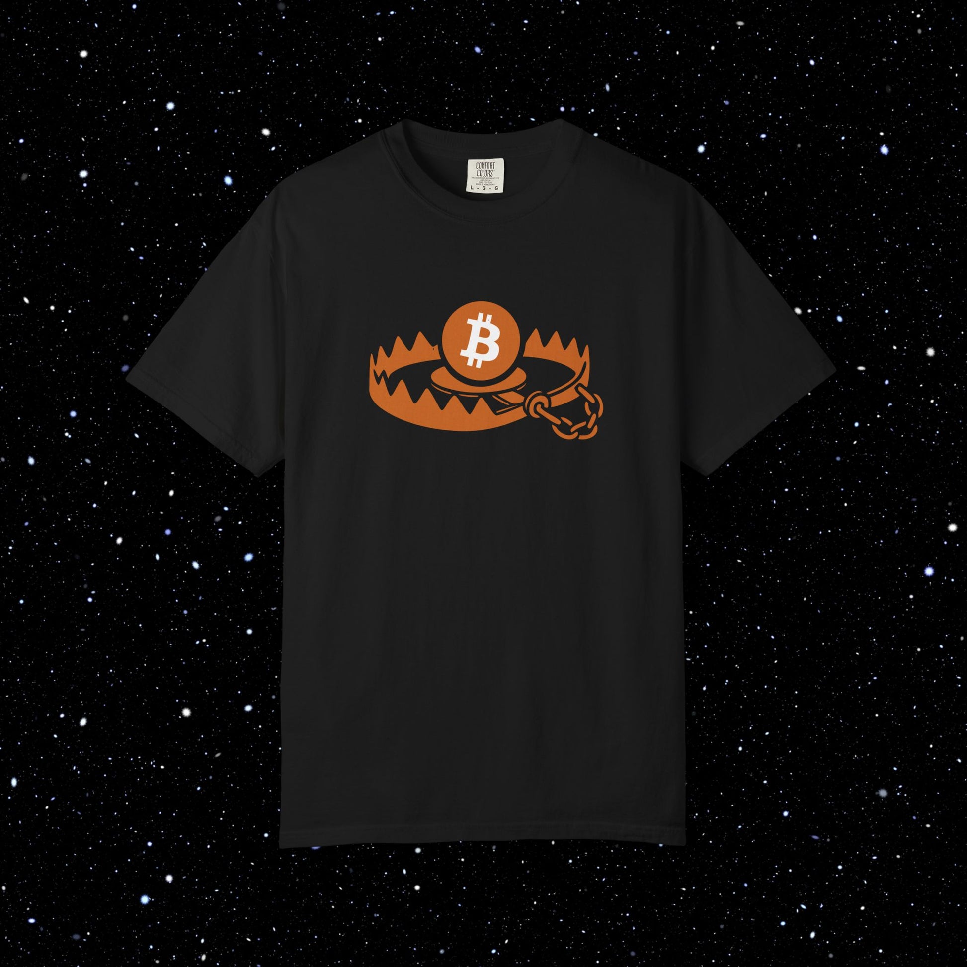 A clean, confident warning to every bear out there. This minimalist design features a Bitcoin coin resting inside a sharp bear trap — a simple reminder of what happens when you bet against hard money.