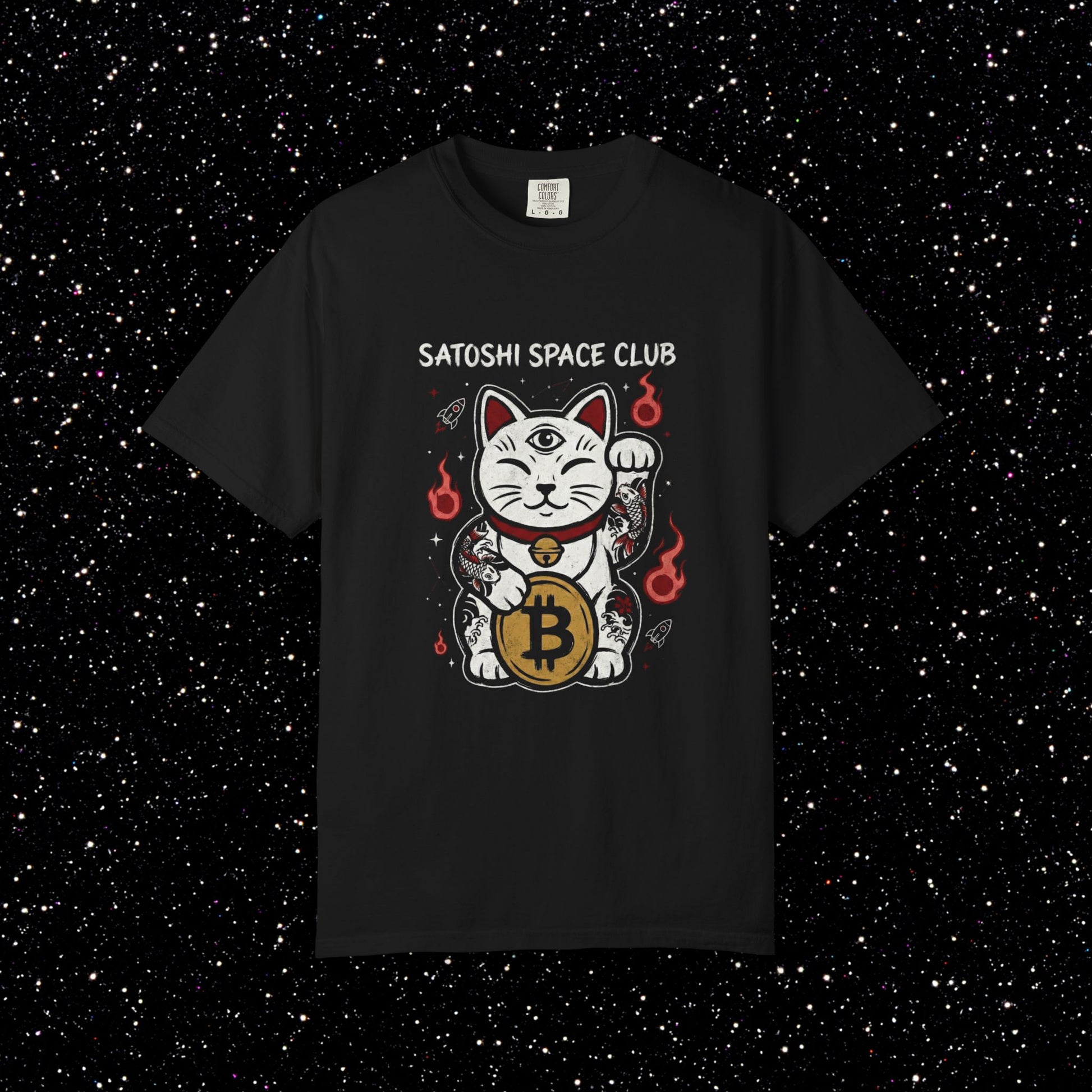 Bitcoin Lucky Cat T-Shirt | Satoshi Space Club Maneki Neko Tee