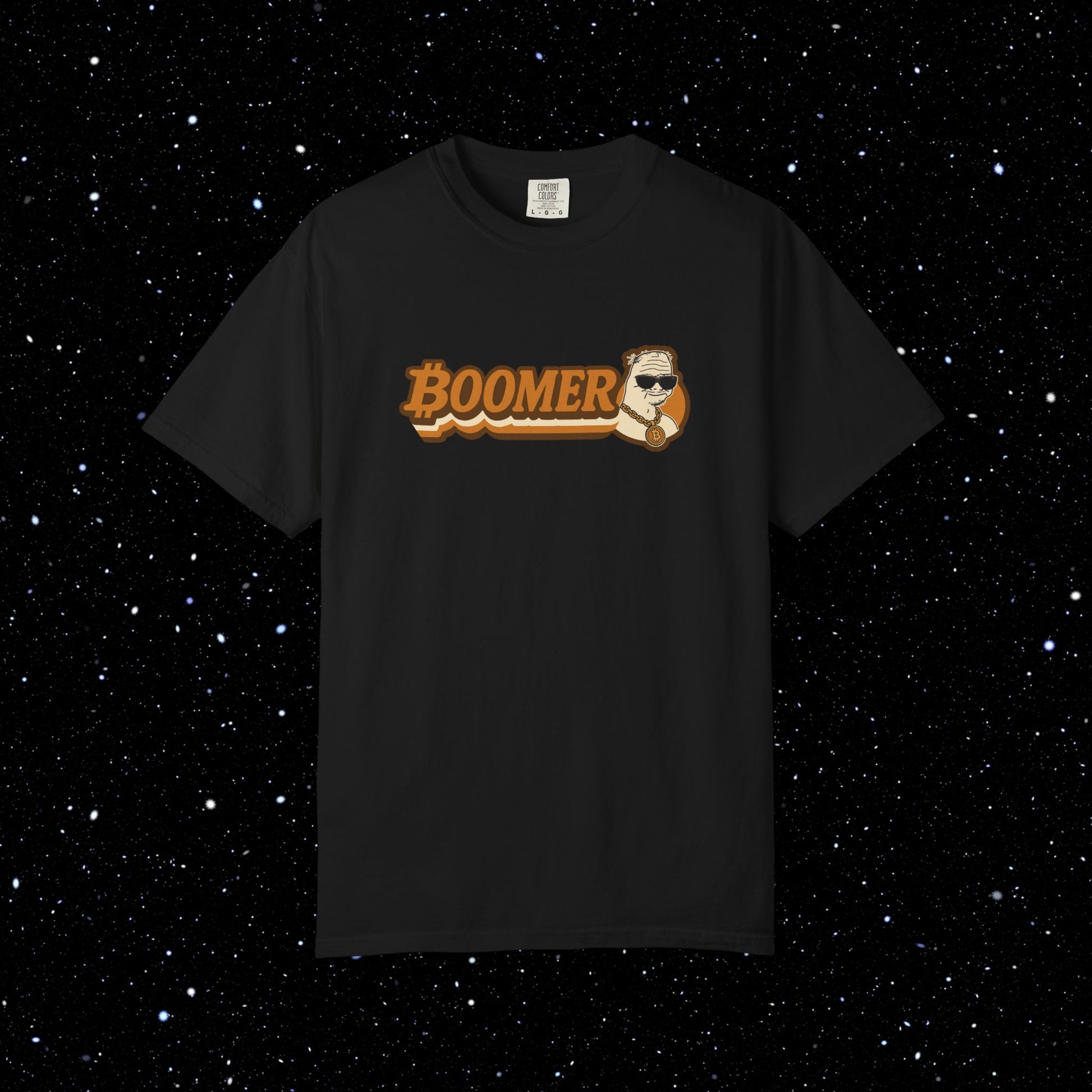 This tee is a nod to every stacker who’s been through enough cycles to feel like a veteran. The design features the OG Boomer Wojak in his Bitcoin glory, using orange, brown, and cream tones straight out of the 70s to remind us that freedom, like good memes, never gets old.