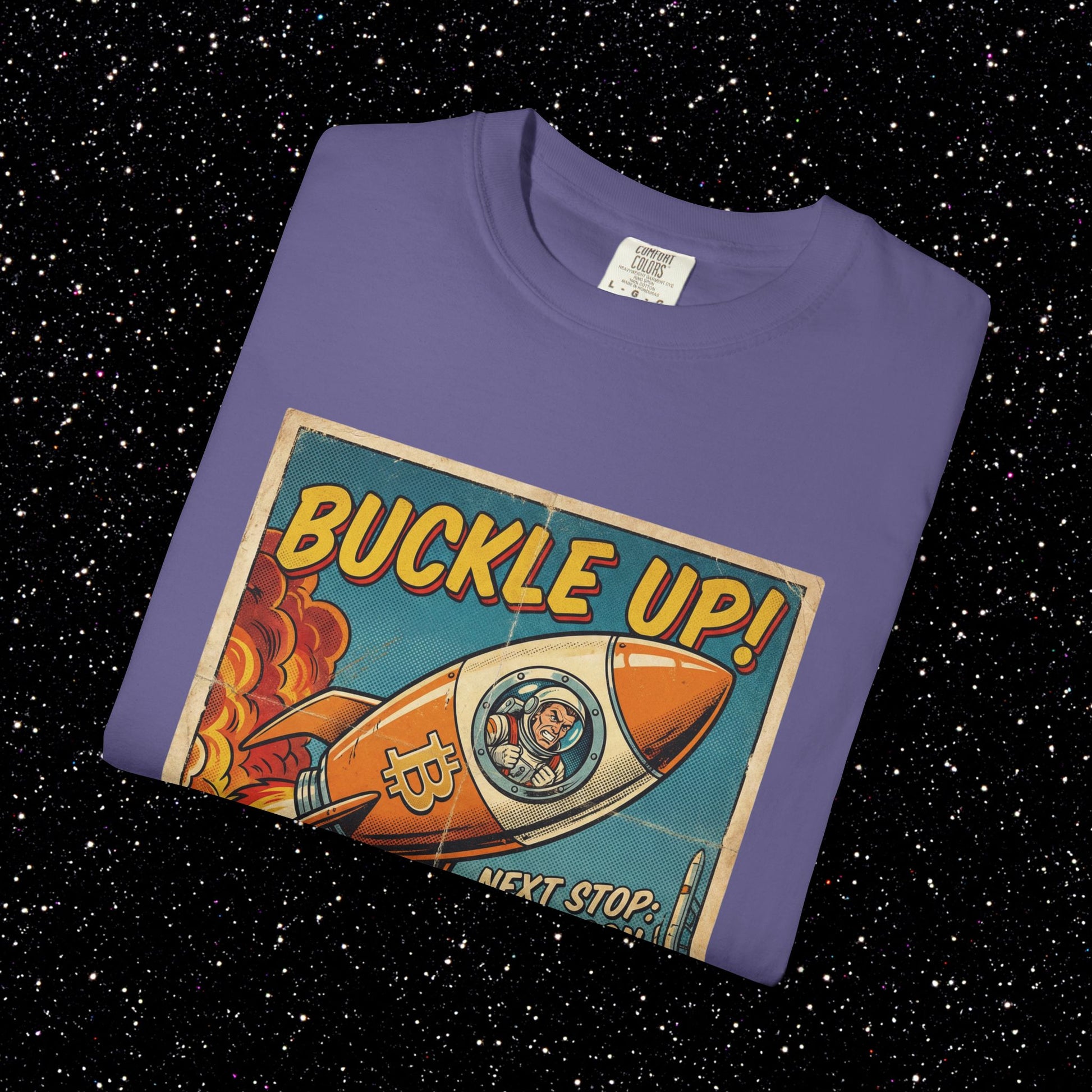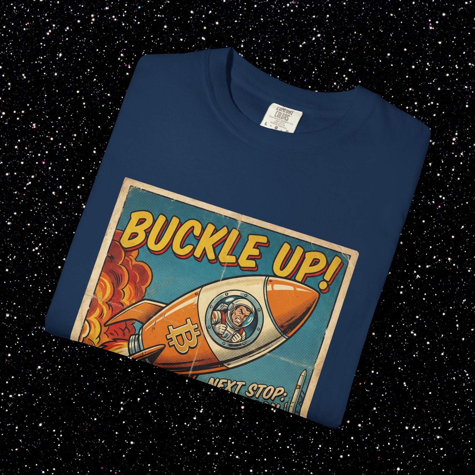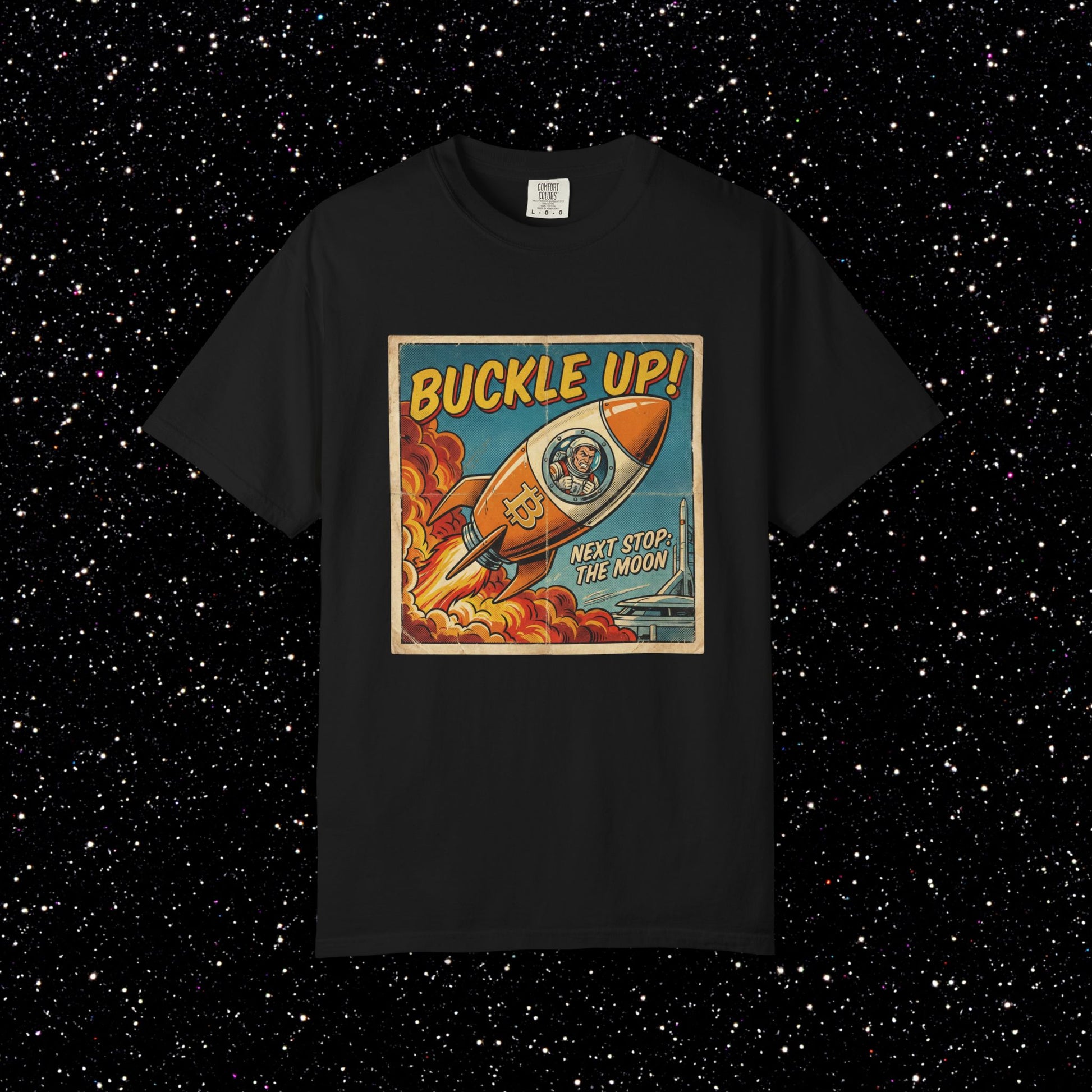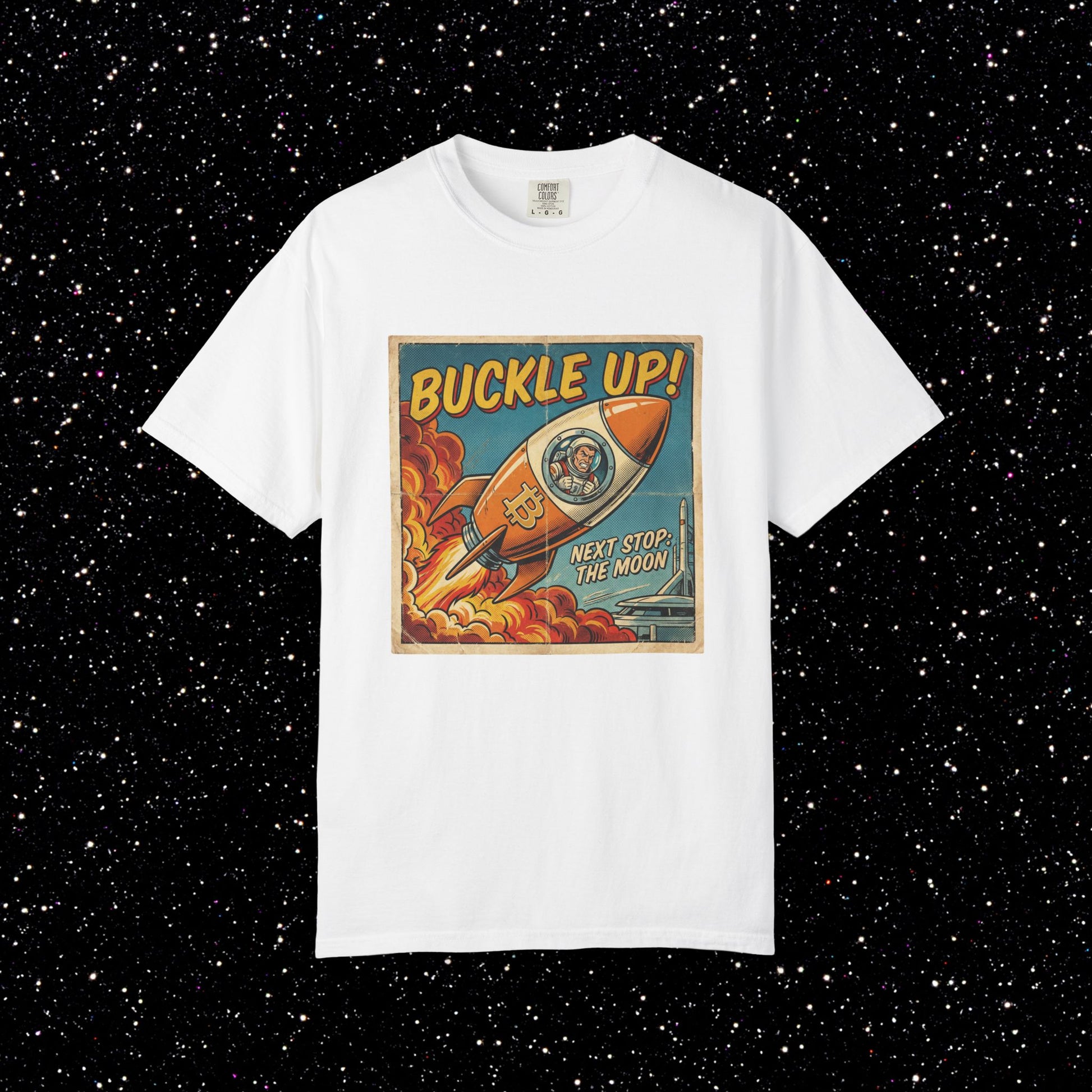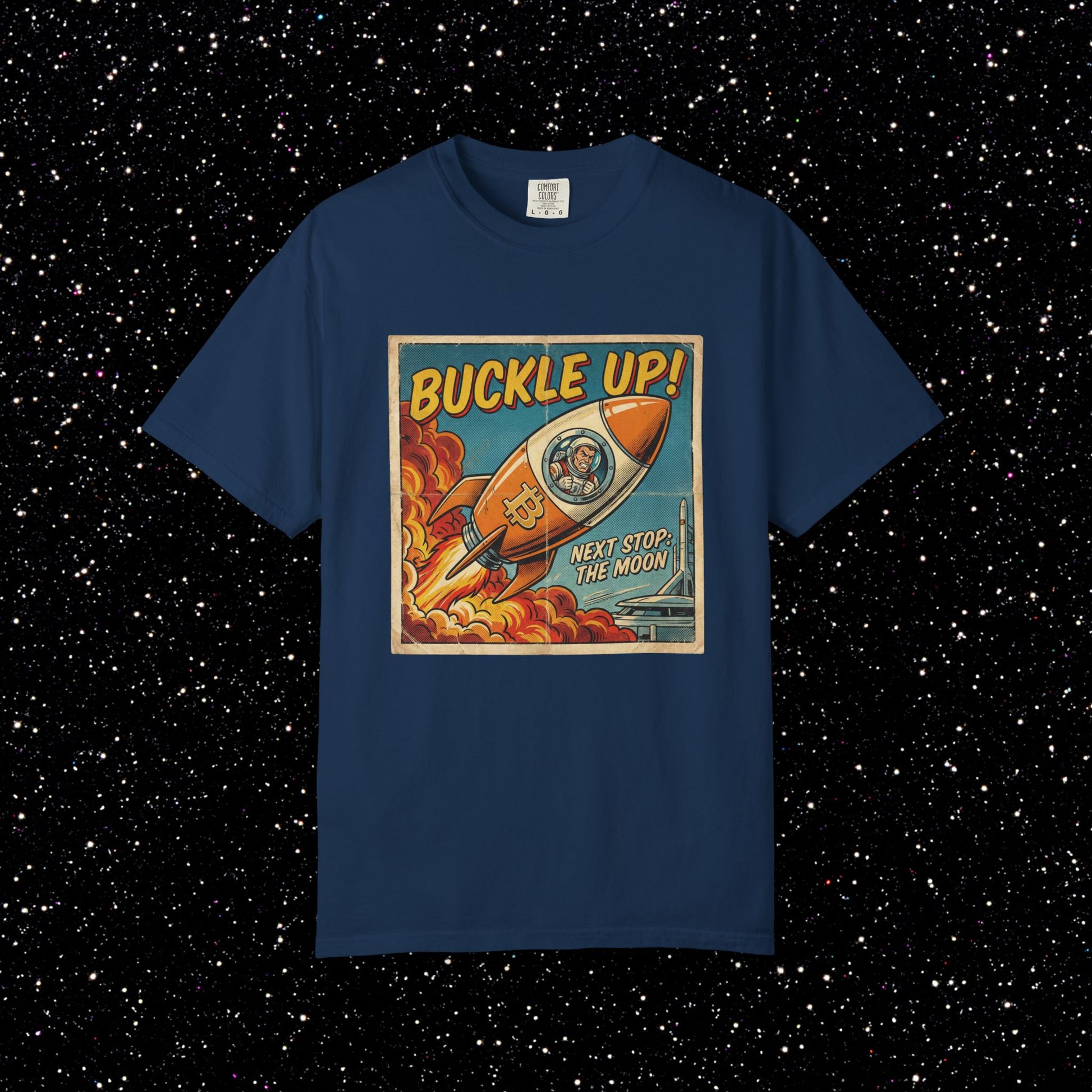 Buckle Up Bitcoin T-Shirt | Next Stop The Moon Retro Tee