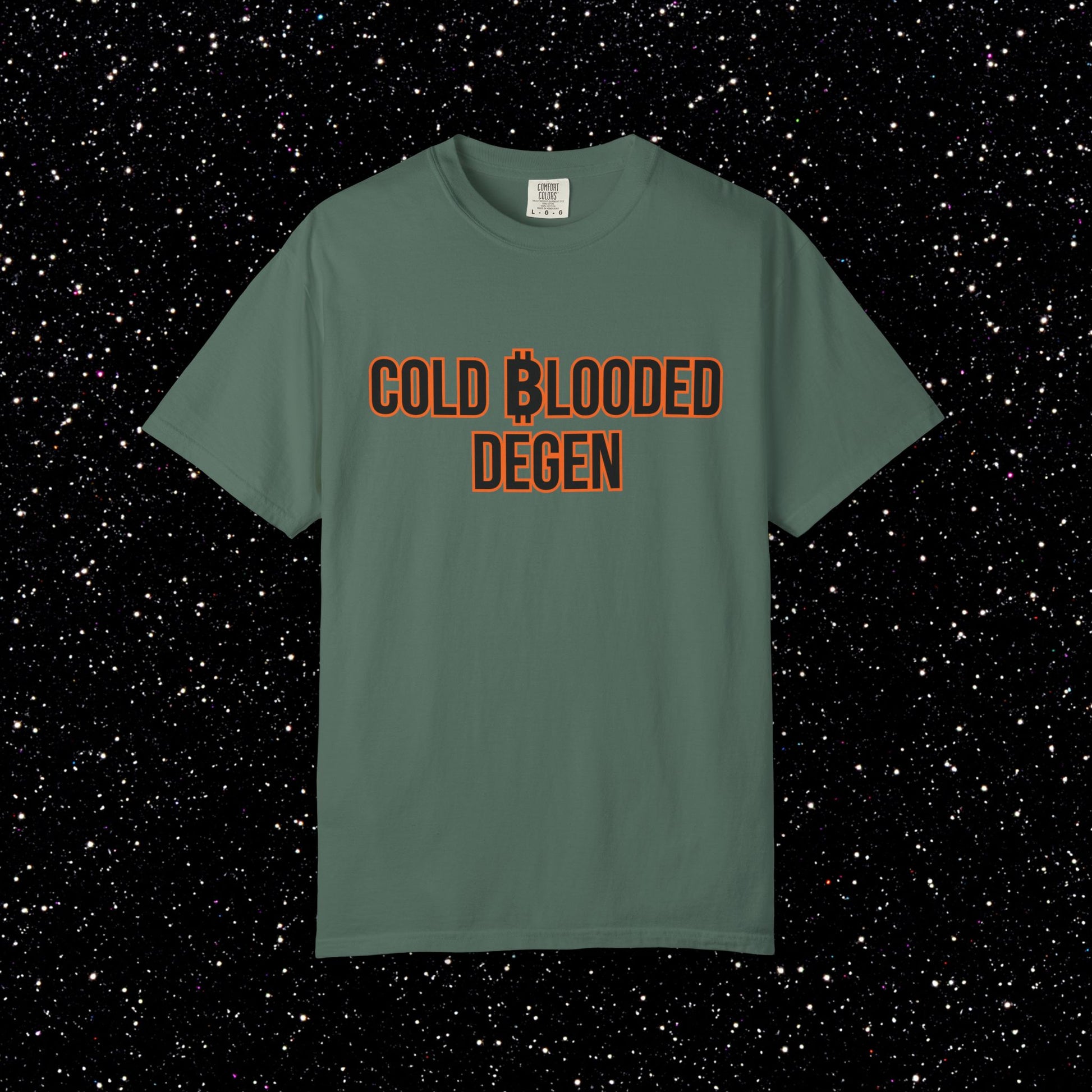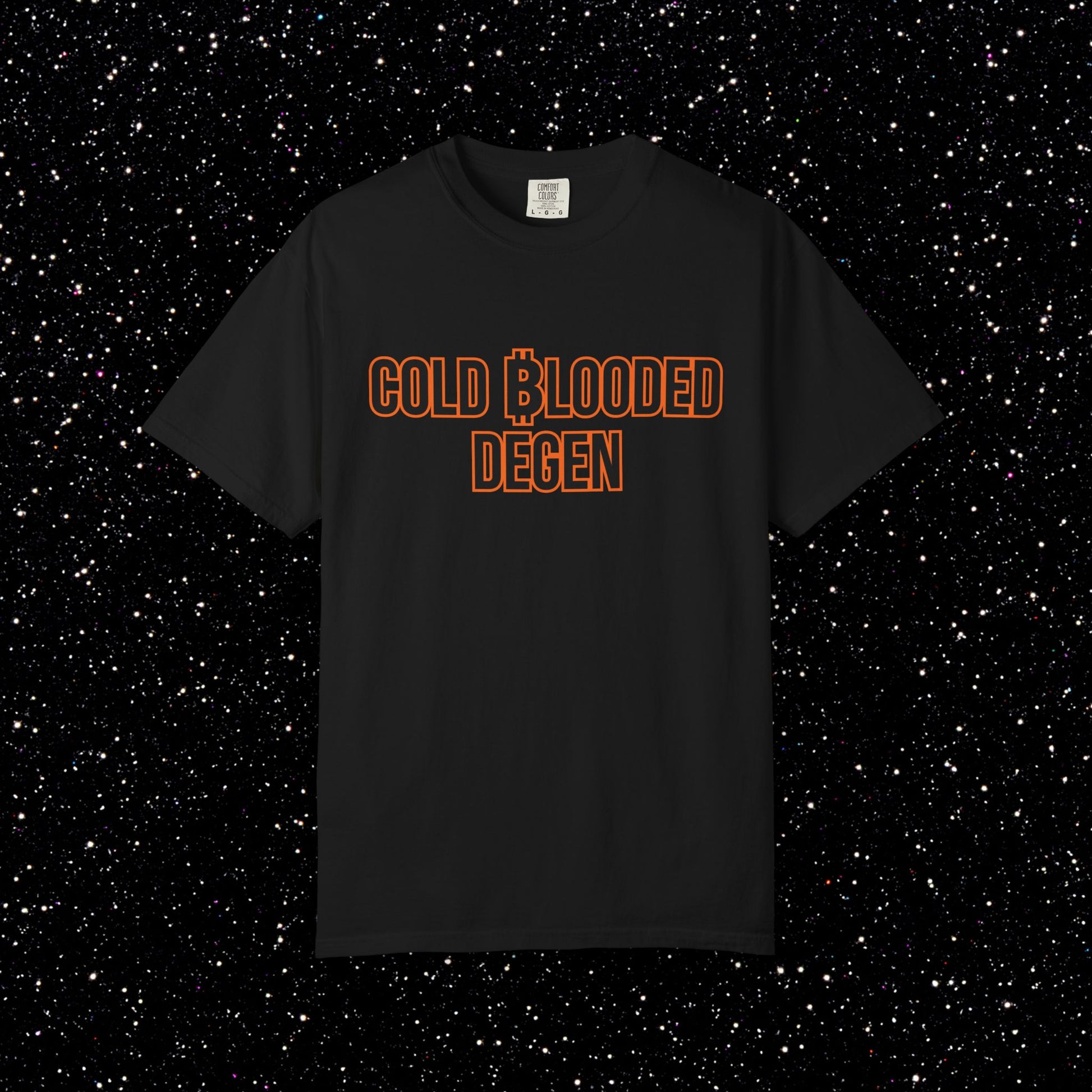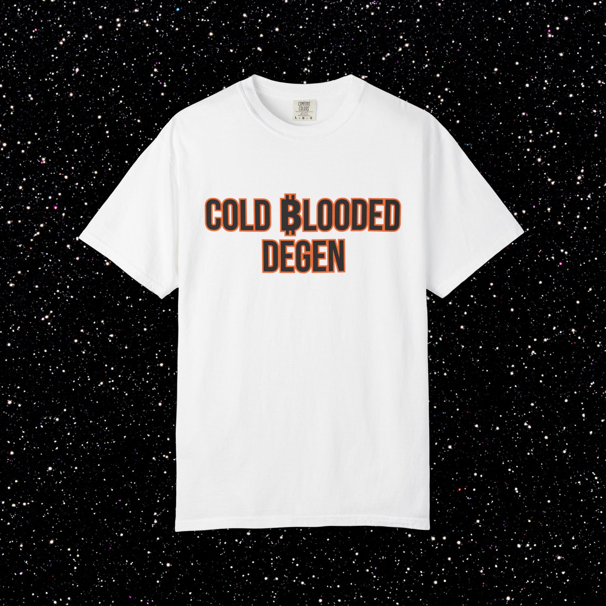 For the psychos who stay icy when the charts get spicy. The Cold Blooded Degen tee is built for anyone who keeps their composure through liquidation cascades, fakeouts, midnight wicks, and full-send moments.