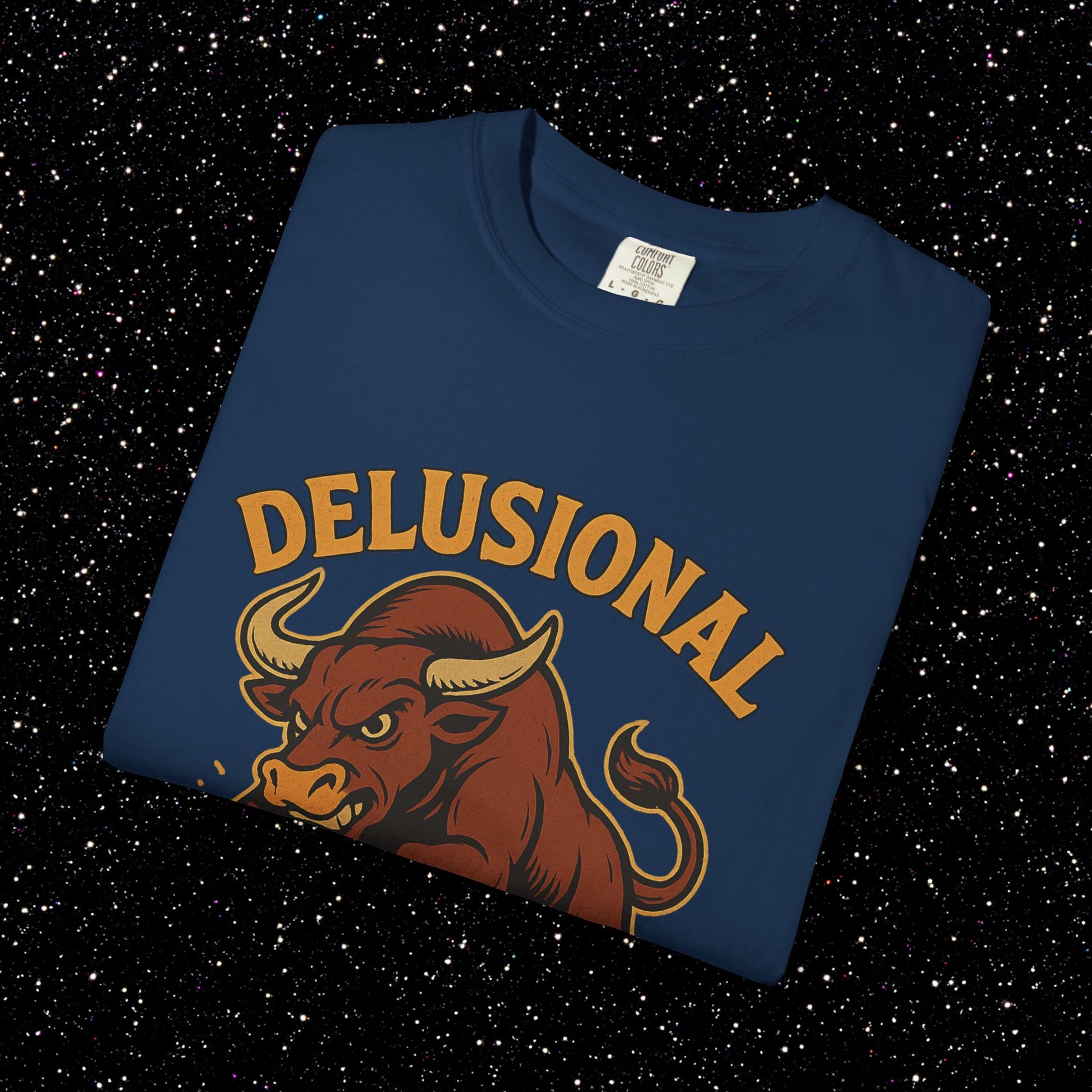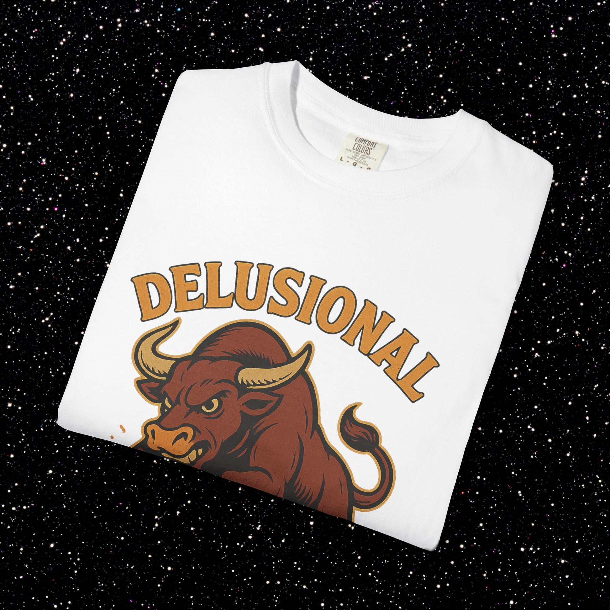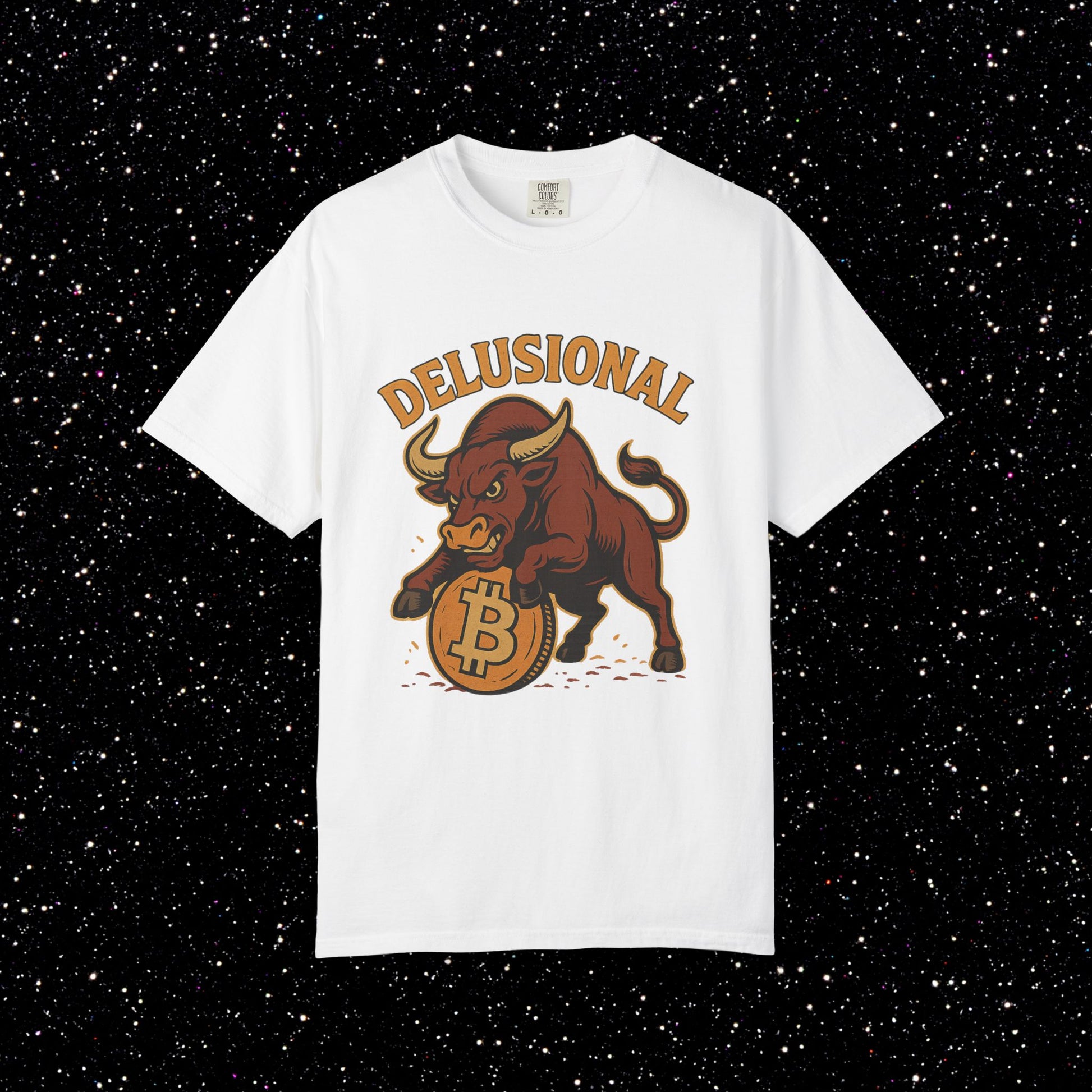 For the traders who see green where everyone else sees doom. The Delusional Bull tee is pure Bitcoin energy, a raging bull charging forward with the ₿ locked under its hoof. Vintage grit, print-ready colors, and that stubborn optimism only real stackers understand. Rock it when the chart looks ugly. Rock it when it looks glorious. Either way, the bull inside you stays delusional.