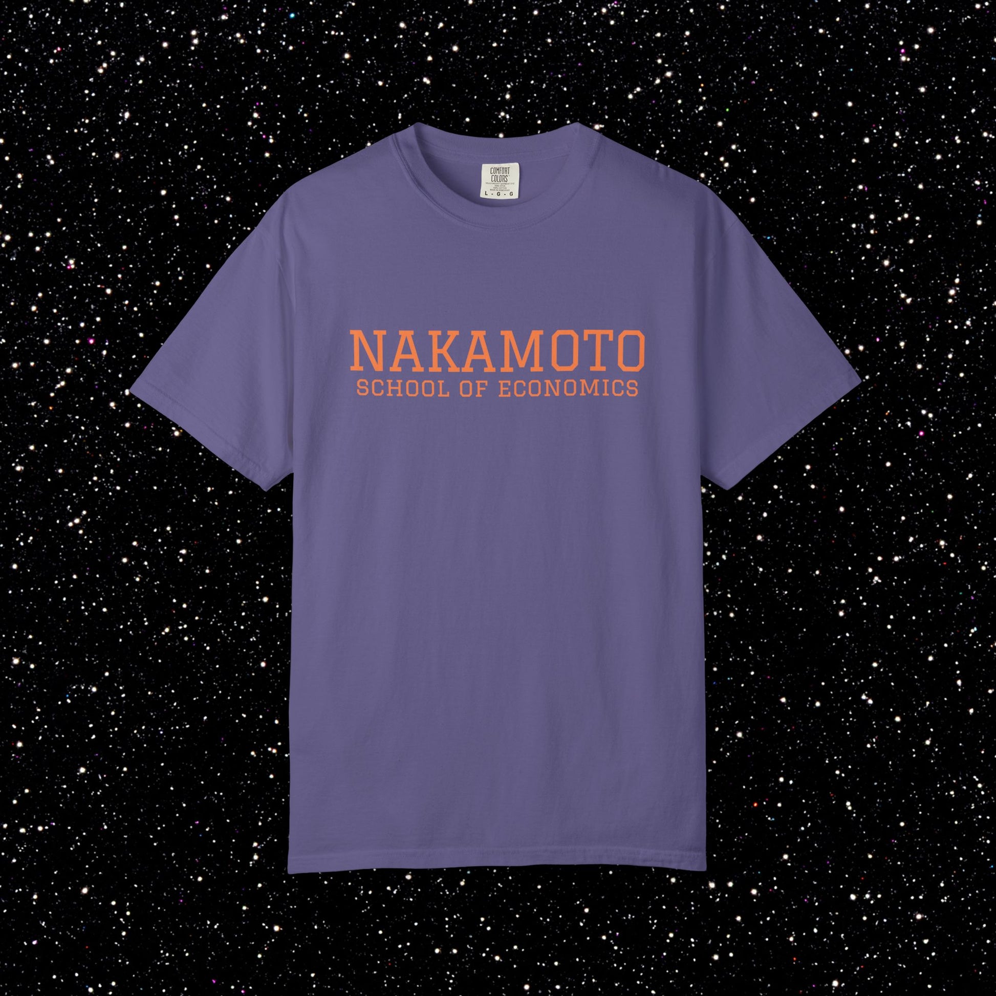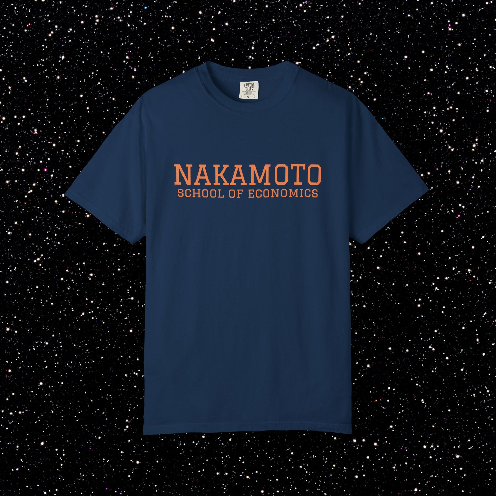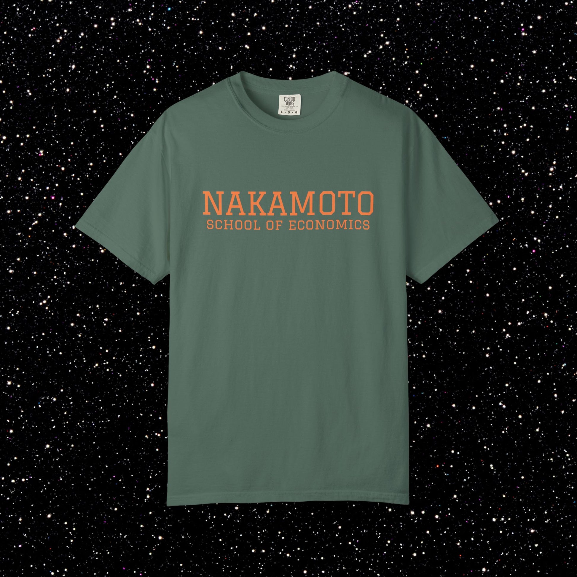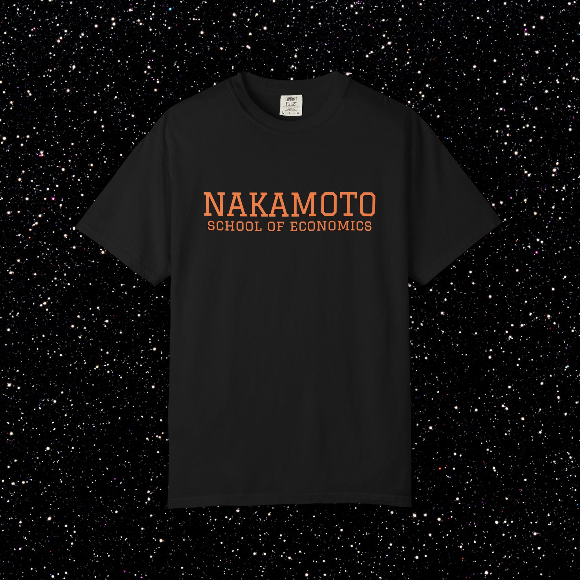 Enroll in the only institution that teaches sound money. The Nakamoto School of Economics tee blends Ivy League heritage with Bitcoin fundamentals. A minimalist collegiate design that nods to old-world academia while repping the future of finance.