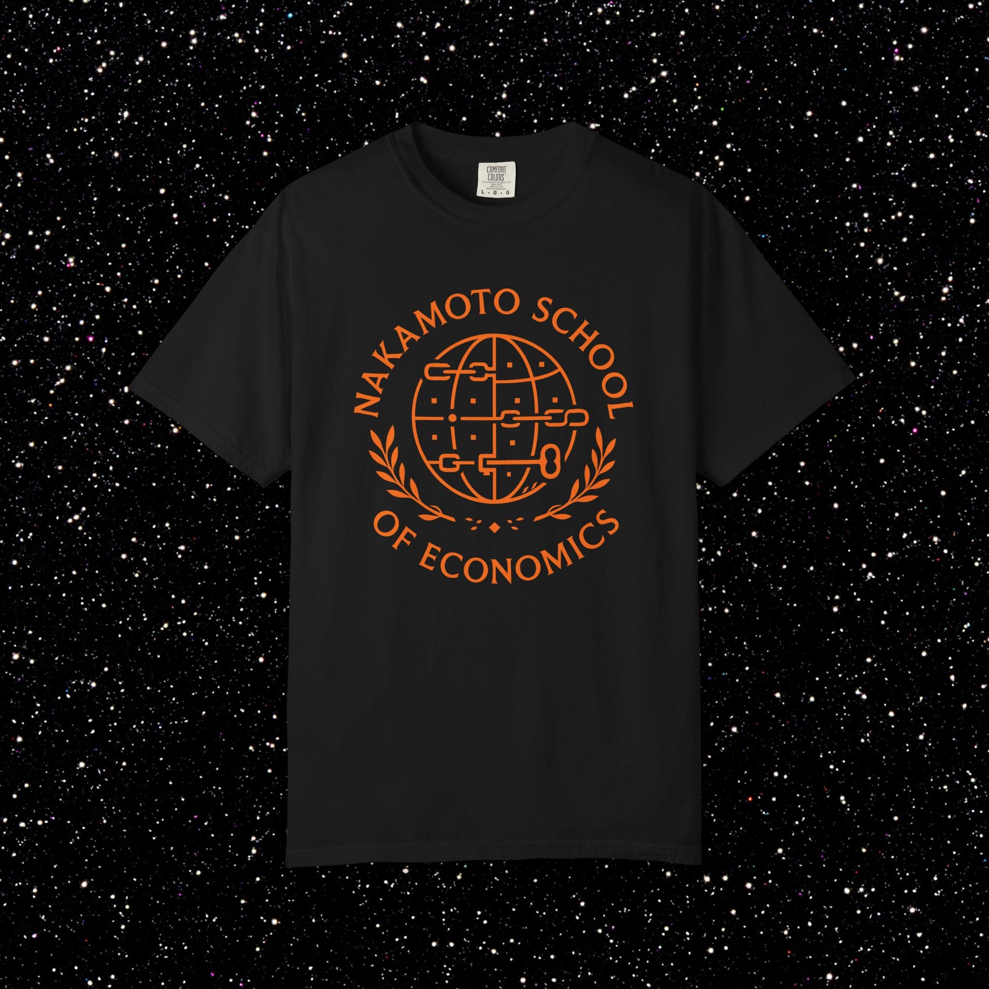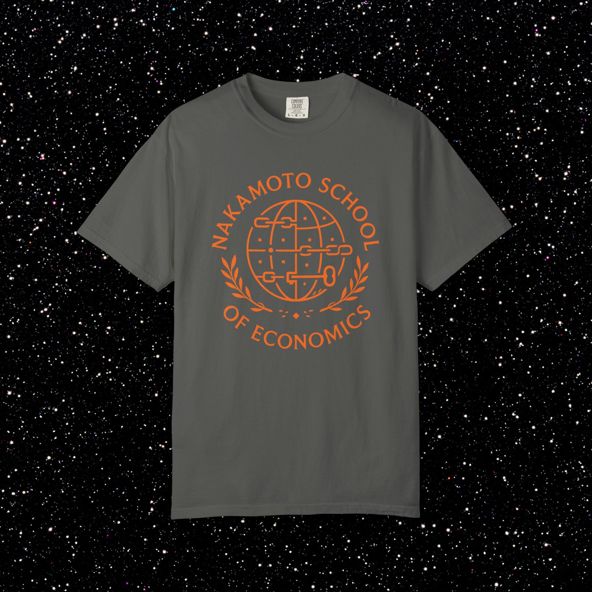 The bold orange print radiates intellect and rebellion, a nod to those who study hard money, not fiat theory.