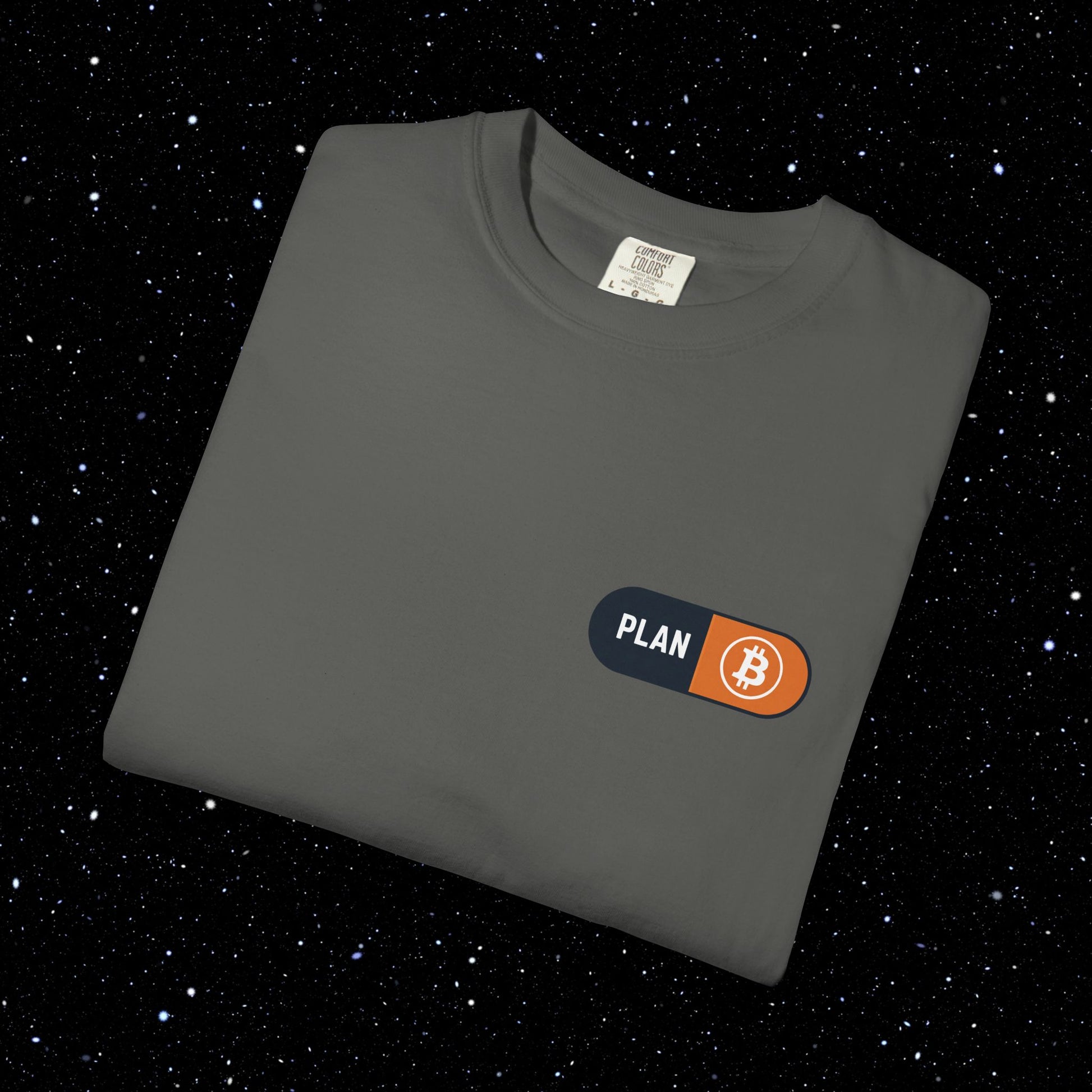 When Plan A fails, Bitcoin doesn’t. The Plan ₿ Pocket Tee keeps it simple: a clean minimalist pill design with “PLAN ₿” on the chest — half black, half Bitcoin orange.