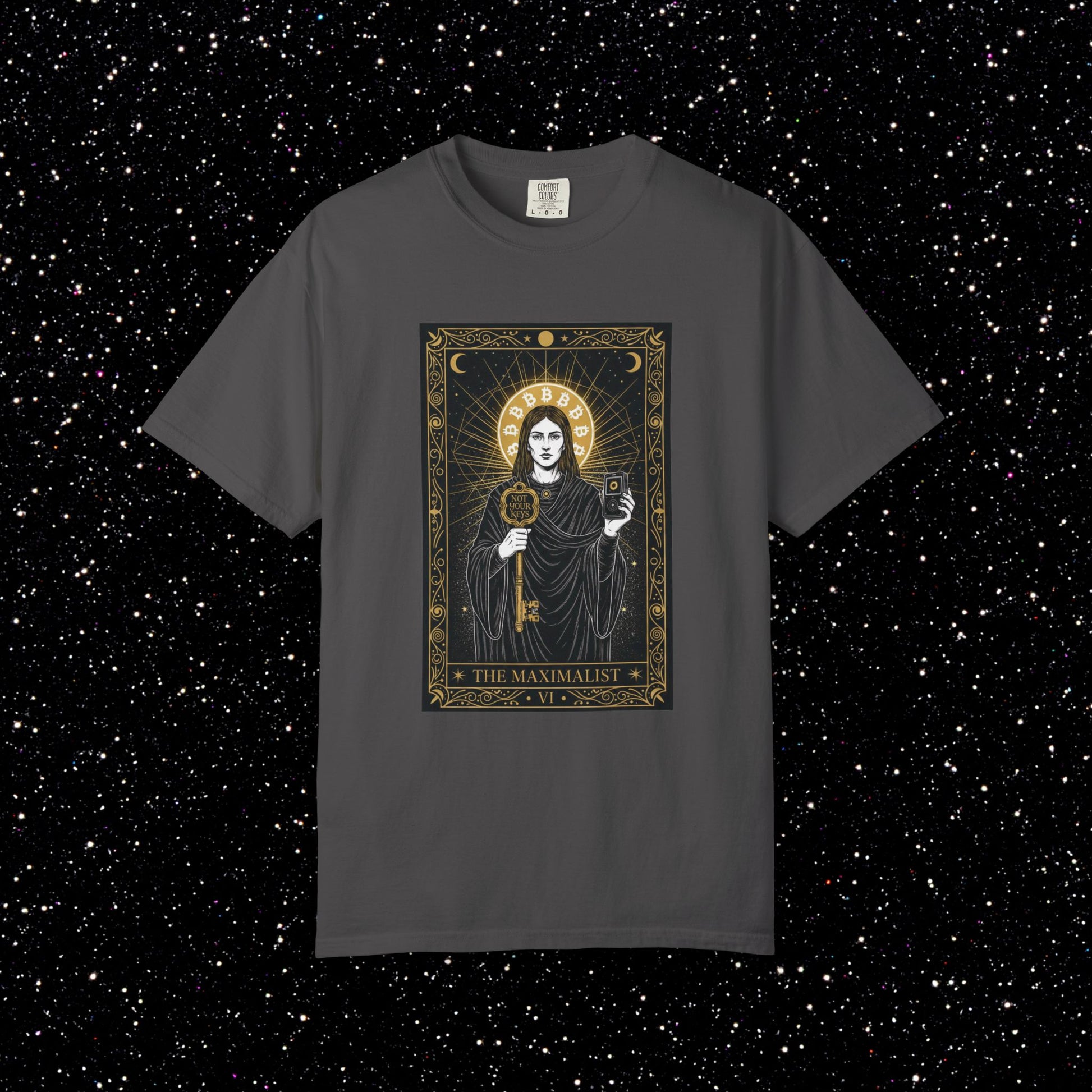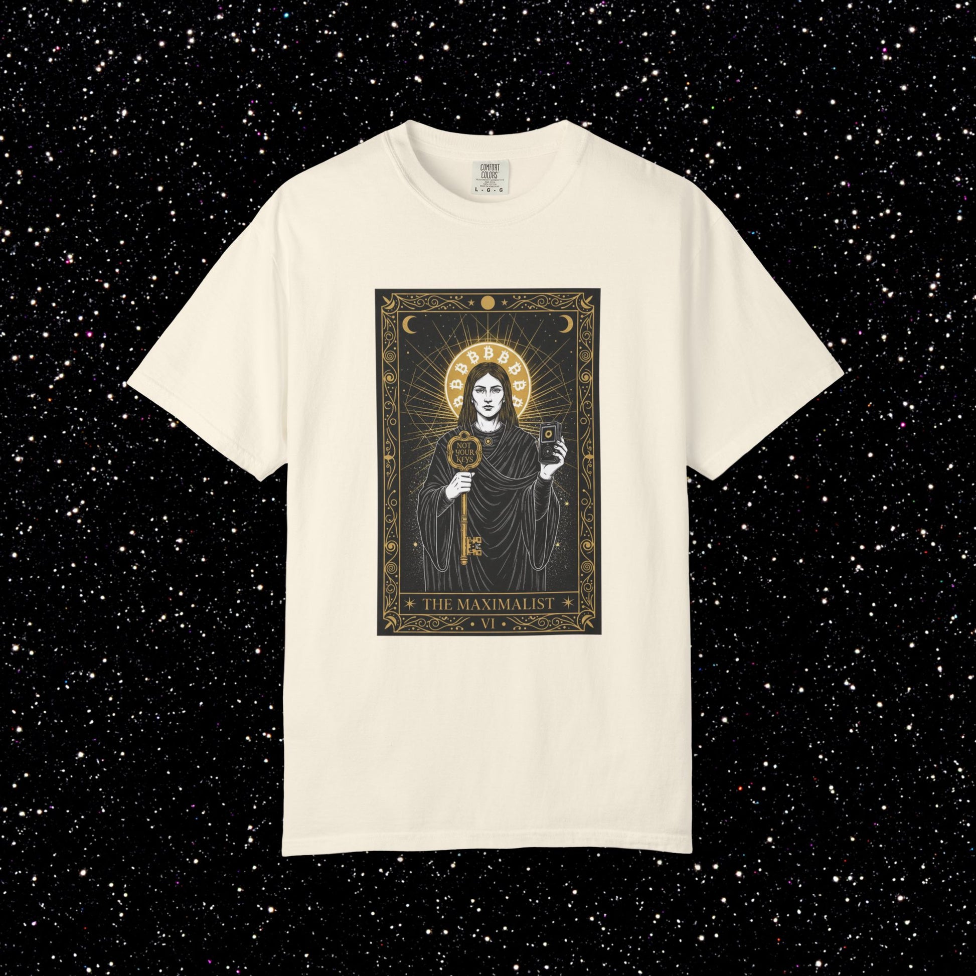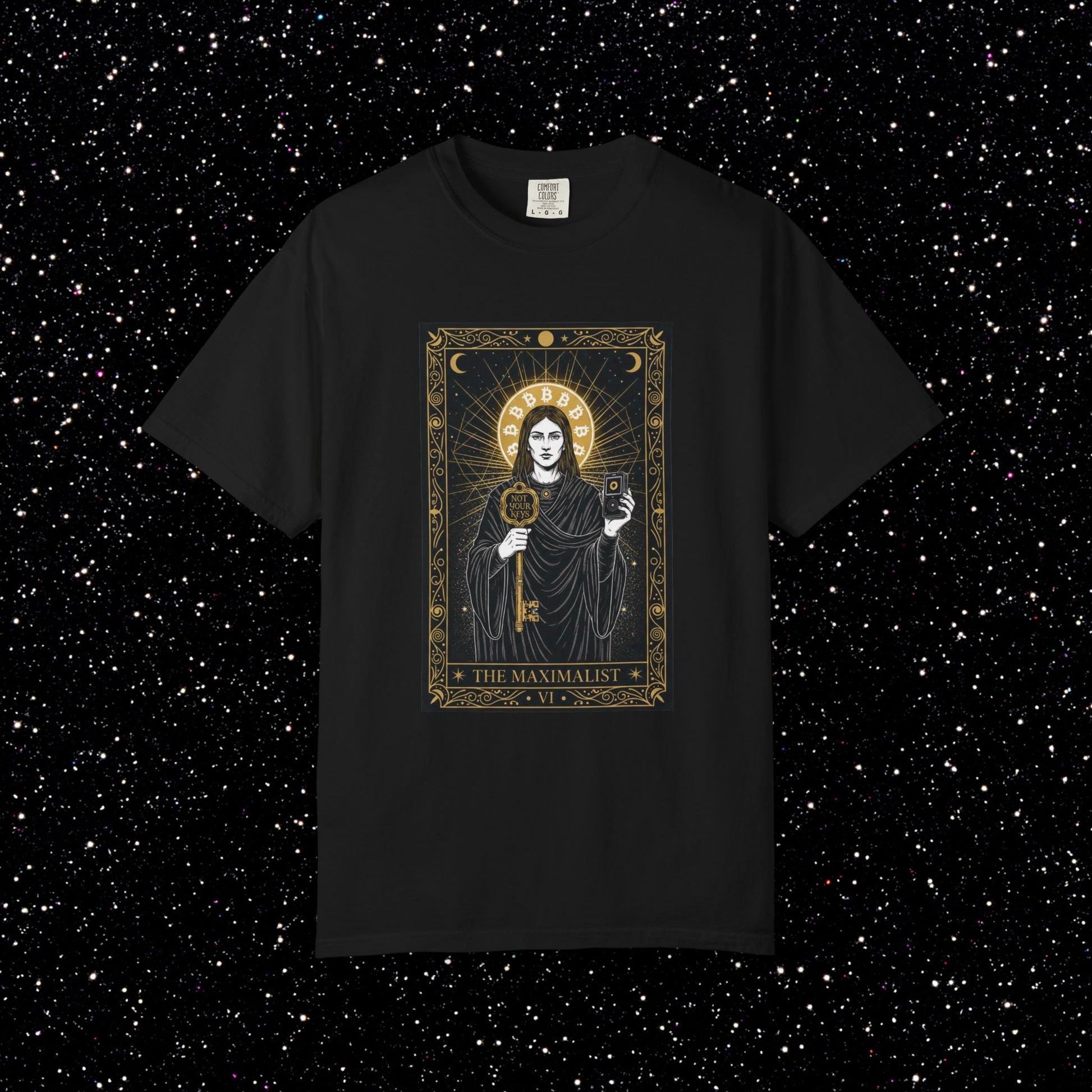 Inspired by tarot iconography and Bitcoin first principles, The Maximalist VI portrays conviction over comfort. Self custody over permission. Signal over noise. The figure holds the keys and the truth, framed in sacred geometry and hard money symbolism. No distractions. No apologies.